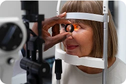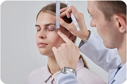 O medico oftalmologista avalia as condições oculares do paciente, observando as possíveis alterações da córnea que impeçam ou interfiram na adaptação da lente de contato.